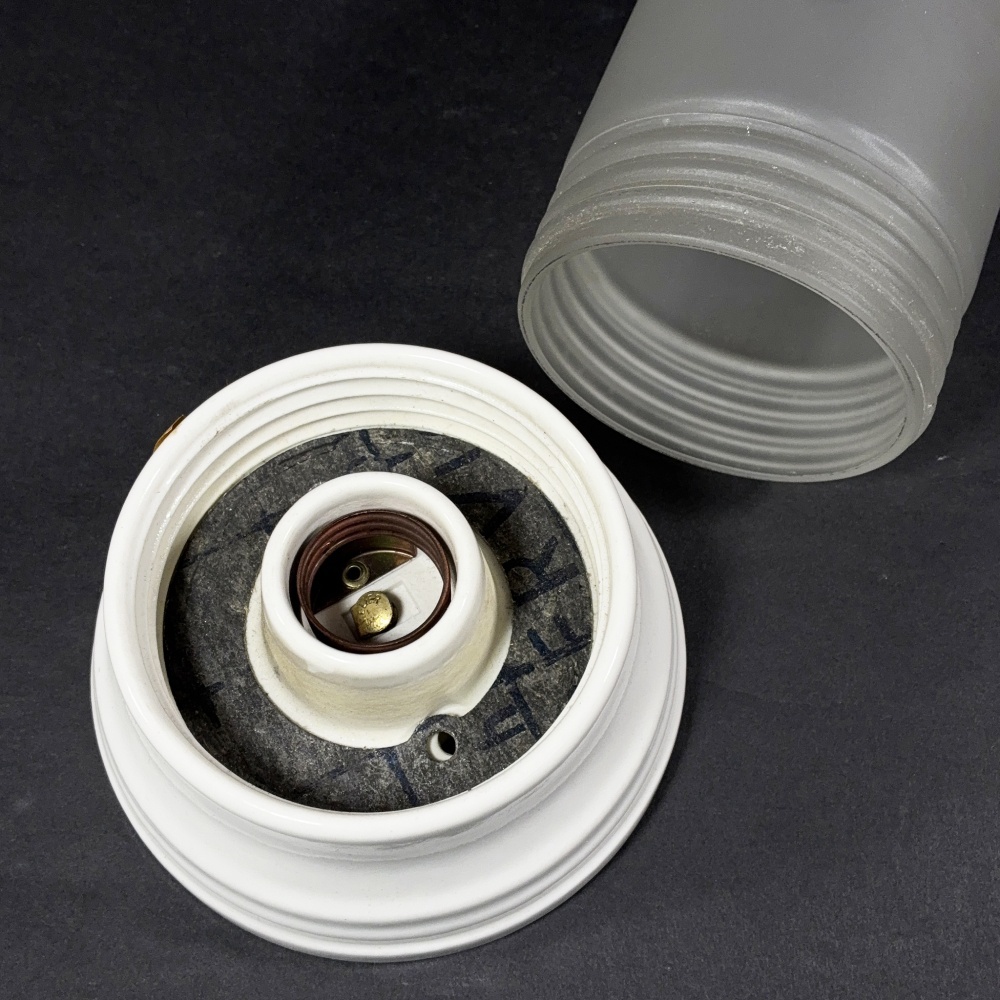 ベースは磁器製で、ガラスシェードは曇りガラス。