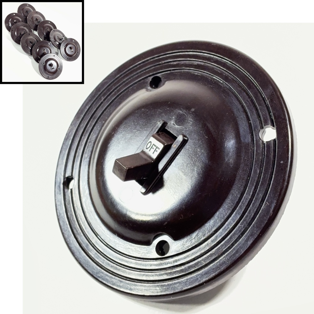 -*10個バラ売り*- ★ Art Deco ★ 1930's“ROUND” Bakelite Switch 【Dead-Stock】