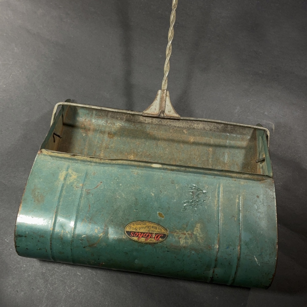 1930年代頃の、ナイスなメーカーデカール付きアンティークちりとりです。