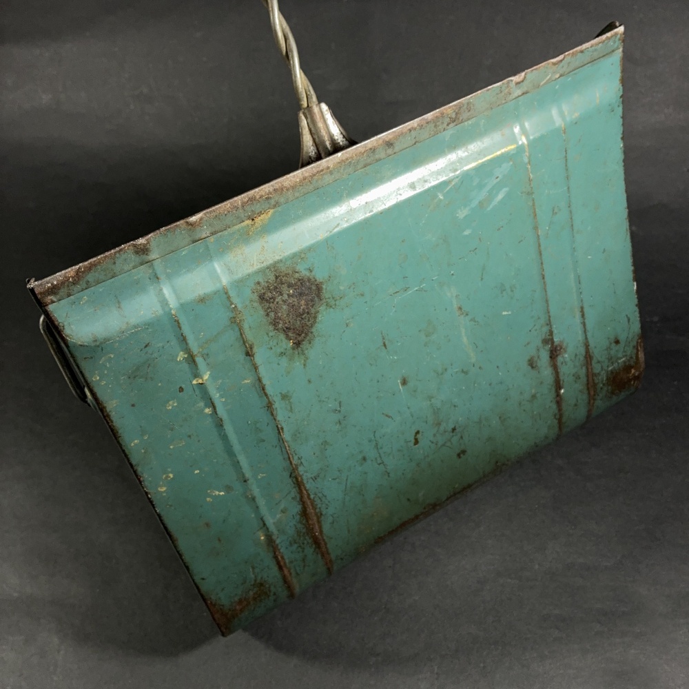 古いちりとりの中ではかなりガッチリとした良い造りで、珍しいツイスト・スチールワイヤー製(太くてかなり硬いです - 亜鉛メッキ)の長い柄が付いております。