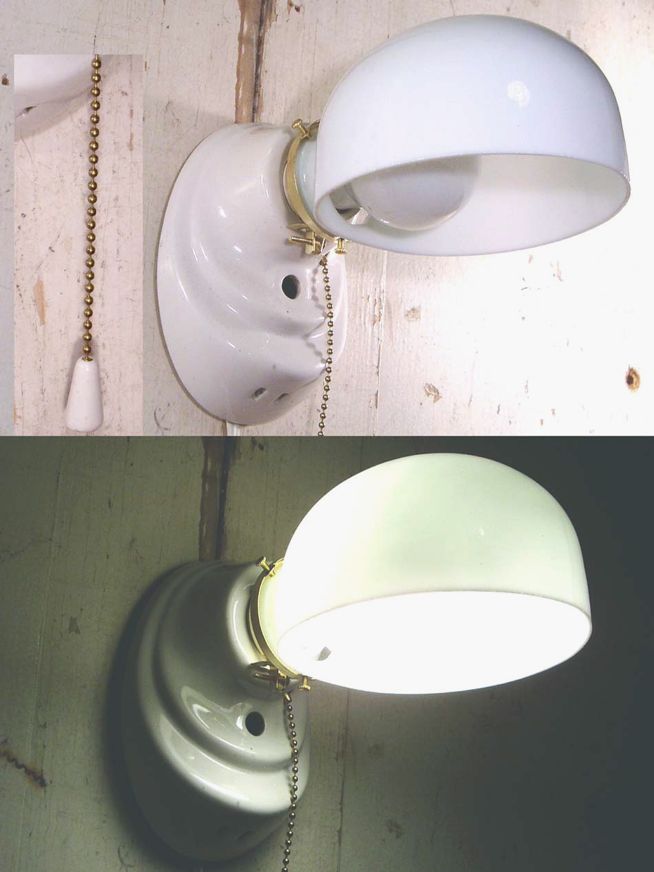 アメリカ製1940年代の陶器製ベースのバスルームランプです。シェードは白濁ガラス製。