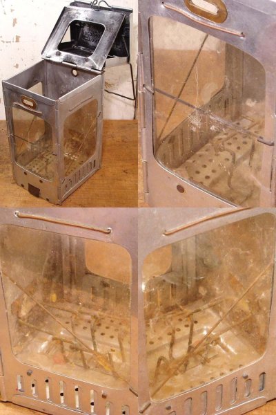 ボディーはアルミ製で、窓の部分はガラスのようにも見えますが、『雲母(うんも)』という素材で天然の鉱物を薄皮を剥いた素材です。今ではあまり聞かないものですが、透明の薄いフィルムが、いくつかの層を成した物と考えてい下さい。押すとそれなりにしなり、外層にヒビが入ると空気が入る感じです。珍しい素材です。